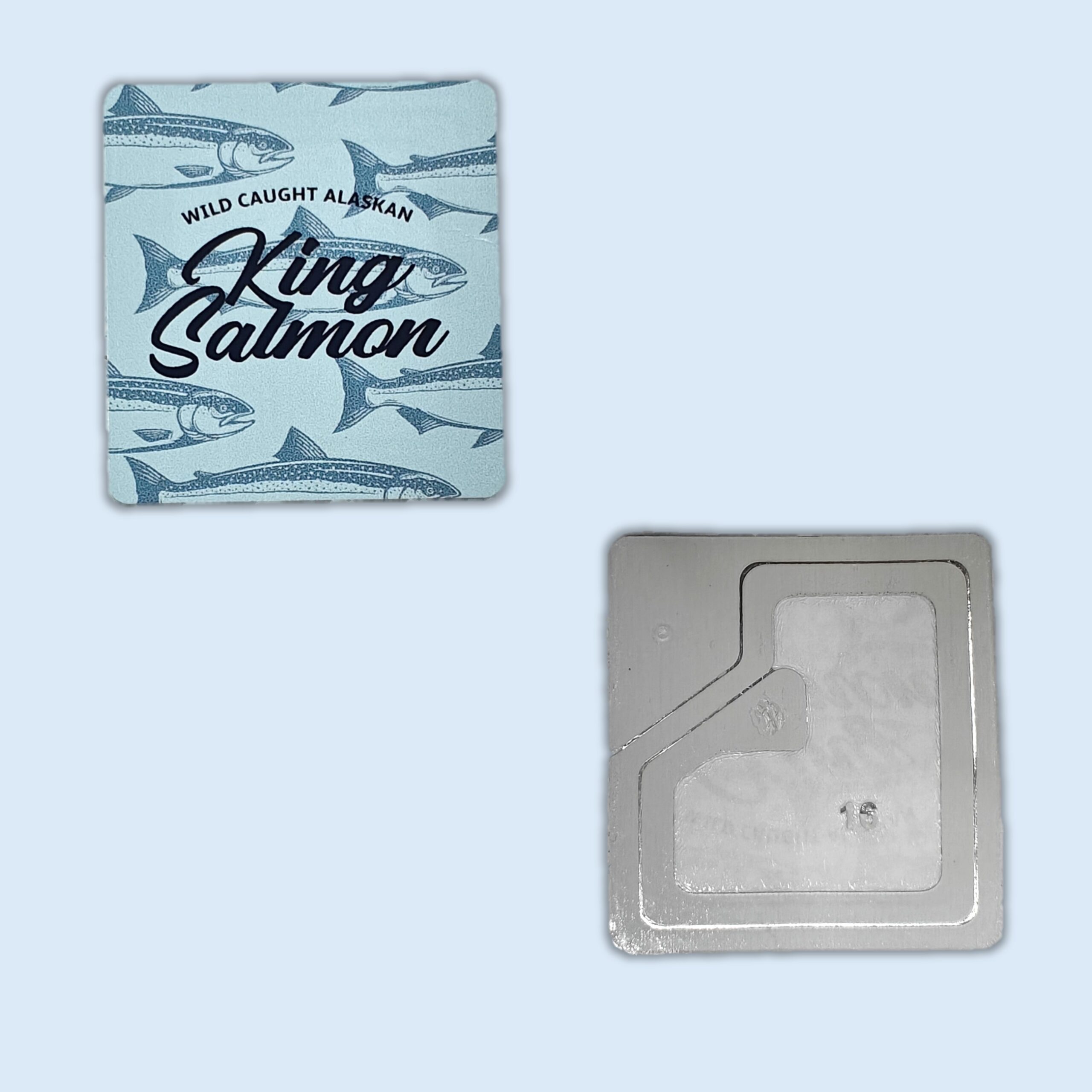 Oavsett hur många färger trycket innehåller kostar etiketterna lika mycket, och oavsett format och storlek är priset detsamma: 80 öre per styck.